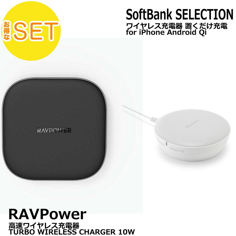 | 【アウトレット2点セット】 RAVPower 高速ワイヤレス充電器 TURBO WIRELESS CHARGER 10W +SoftBank SELECTION ワイヤレス充電器 for iPhone Android Qi