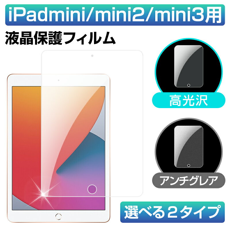 iPad mini/2/3の液晶を、傷や埃から守る液晶保護シール!自己吸着タイプなので、間違えても貼りなおし可能! iPad mini/2/3液晶保護フィルムが入荷!高光沢タイプのフィルムは高画質な液晶にピッタリ!iPad mini/2/3の液晶を、傷や埃から守る液晶保護シール。