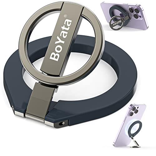 | BoYata マグネット式スマホリング MagSafe対応 バンカーリング スマホスタンド機能 360度回転 角度調整可能 磁気増強メタルリング付き スマホ落下防止 取り外し可能 コンパクト 片手操作 耐久性 iPhoneシリーズ iPhone15/14/13/12 HUAWEI XIAOMI Android全機種対応(Navy Blue