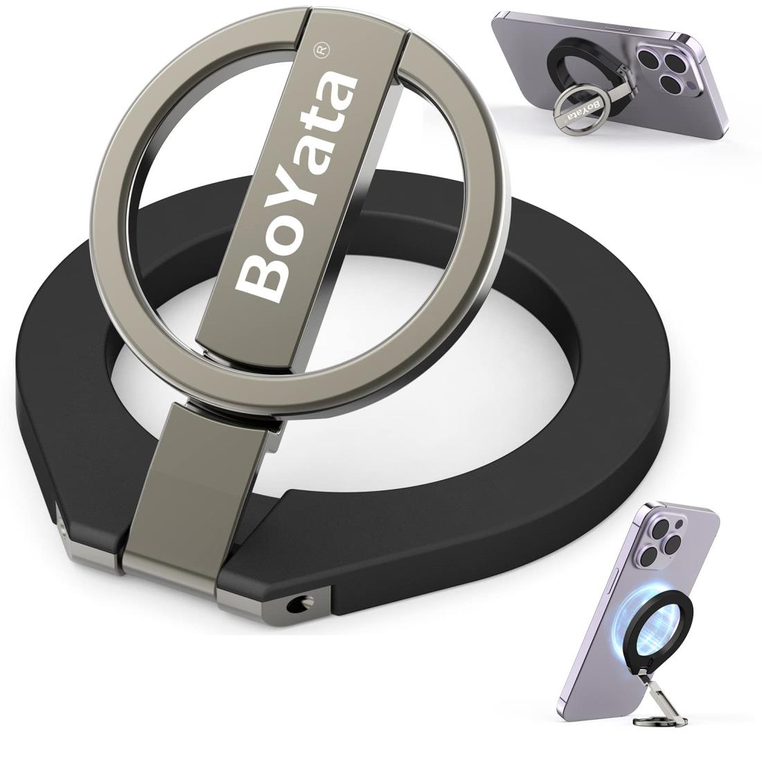 | BoYata マグネット式スマホリング MagSafe対応 バンカーリング スマホスタンド機能 360?回転 角度調整可能 磁気増強メタルリング付き スマホ落下防止 取り外し可能 コンパクト 片手操作 耐久性 iPhoneシリーズ iPhone14・13・12 HUAWEI XIAOMI Android全機種対応 (ブラック)