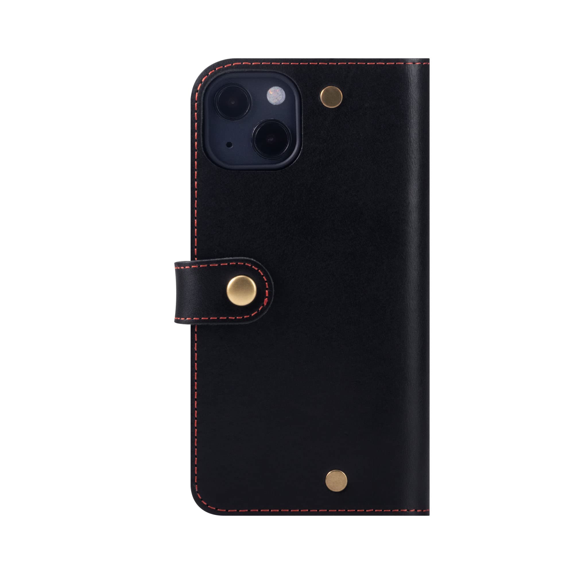 | HANATORA iPhone15 ケース 手帳型 本革 スマホケース スマホ スタンド ストラップ 付き イタリアンレザー ギフト マグネットなし ブラック PN-15-Black