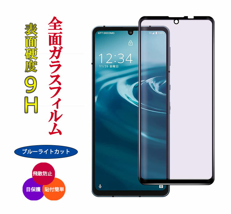 | ガラスフィルム ブルーライトカット 全面保護フィルム AQUOS sense7 sense8 液晶保護フィルム SH-53C SH-54D SHG10 SHG11 耐衝撃 強化ガラスフィルム 保護フィルム クリア 透明 耐衝撃 フルカバー 硬度 9H 指紋防止 アクオス センス7 センス8