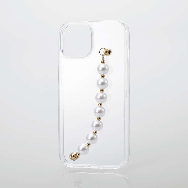 | 【即納】エレコム iPhone 15 用 ケース ハイブリッド カバー 衝撃吸収 カメラレンズ保護設計 ハンドバンド付 ストラップホールシート付 &me クリア×パールバンド