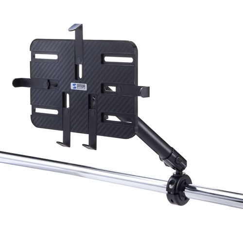 カートや台車などの円柱状の取っ手に設置できる、タブレットホルダー。