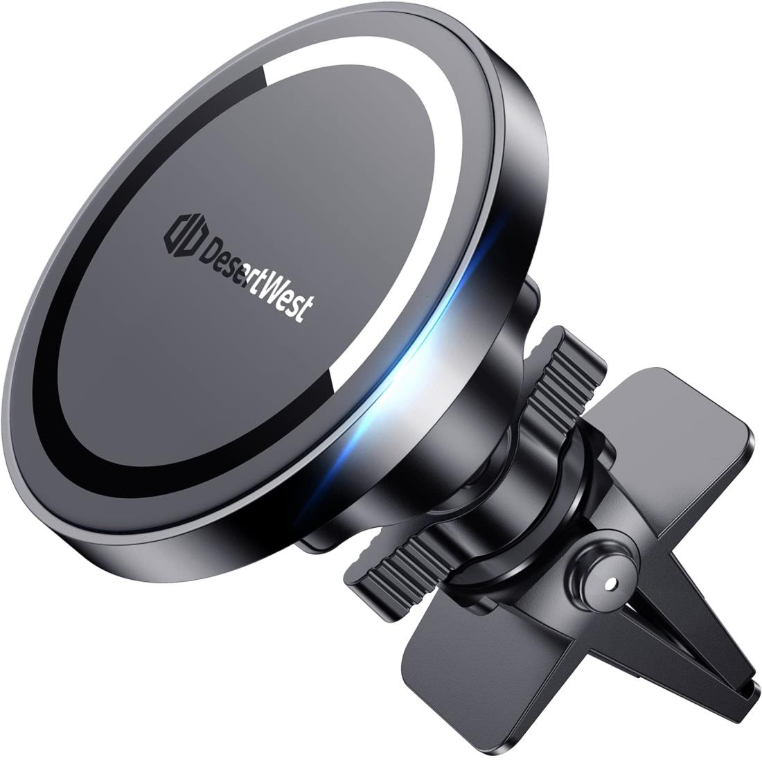 | 【超強磁力&業界最強磁石】 DesertWest スマホホルダー車 スマホスタンド magsafe対応 マグセーフ 車載 車載ホルダー 磁石 iphone エアコン吹き出し口/360°回転/電波干渉なし/片手操作/安定性最強/日本説明書付きiPhone/Android/4-8インチ全機種対応