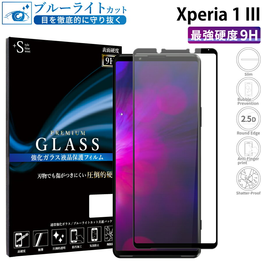 | Xperia 1 III ガラスフィルム ブルーライトカット SO-51B SOG03 A101SO 強化ガラス 全面液晶保護フィルム エクスペリア1 III フルカバー 全面 目に優しい 液晶保護 画面保護 TOG RSL TJ
