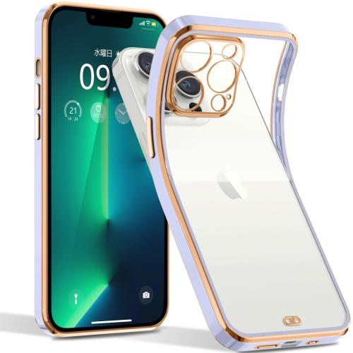 iPhone 13 Pro ケース クリア 可愛い アイフォン13pro スマホケース 耐衝撃 TPU 薄型 軽量 メッキ加工 人気 ソフト 一体型 レンズ保護 (クローブ紫)