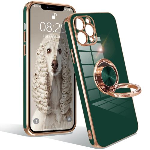 | iphone12 pro ケース リング アイフォン12pro カバー リング付き 耐衝撃 携帯カバー TPU 軽量 シリコン スタンド機能付き 360回転車載ホルダー 一体型レンズ保護カバー 6.1インチ(ダークグリーン)