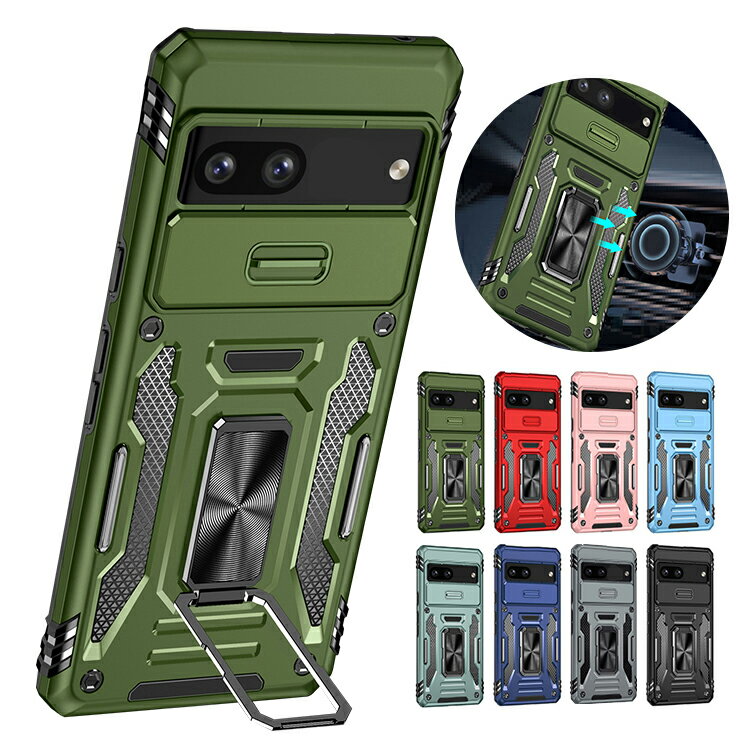 | Pixel7a ケース 耐衝撃 カバー 一体型リング付き スライド式カメラレンズカバー付き カメラ保護 スタンド機能 マグネット式車載ホルダー対応 2重構造 Google グーグル ピクセル7a アンドロイド おすすめ おしゃれ スマートフォン/スマフォ/スマホケース/カバー