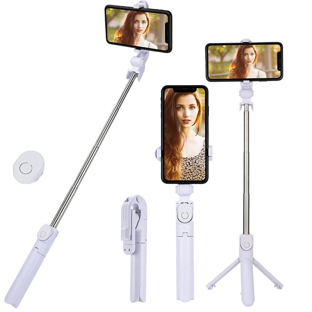 | 【日本技適マーク取得品】自撮り棒 じどり棒 【2024業界モデル・軽量】三脚/一脚 兼用 卓上 軽量 360度回転 無線リモコン付き ライトなし セルフィー/撮影録画/生放送/動画鑑賞に最適 iPhone/Android スマホ等多機種対応(ホワイト)