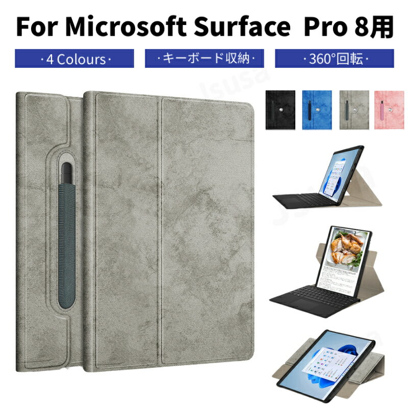| 専用フィルムおまけ!Microsoft Surface Pro 8用ケース カバー レザーケース 手帳型保護カバーマイクロソフト サーフェス プロ8 用ケース 360°回転スタンド機能 ネコポス送料無料 !【ra55311】