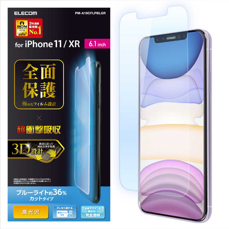 | エレコム ELECOM iPhone 11 6.1インチ フルカバーフィルム 衝撃吸収 ブルーライトカット 防指紋 高光沢 透明 PM-A19CFLPBLGR