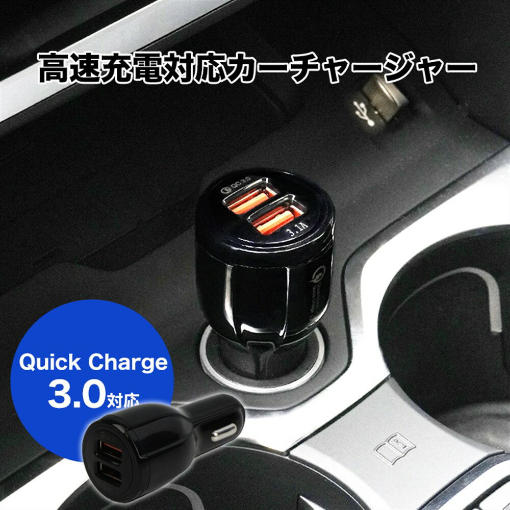 | 【急速充電 Quick Charge 3.0 対応】カーチャージャー シガーソケット USB 急速充電 車載 車 充電器 iPhone Android 車載 USB充電器 2ポート 車載充電器 12V 24V対応 アンドロイド アイフォン クイックチャージ アイフォン ゲーム機 アイコス スマホ タブレット