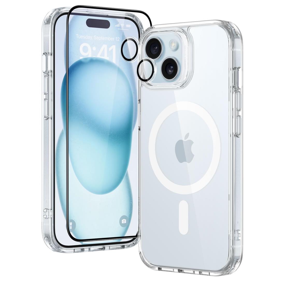 ESR iPhone 15 Plus ケースセット 強化ガラスフィルム1枚 レンズフィル1組 米軍規格の保護 黄ばみにくい 傷に強いMagSafeスマホケース Classicシリーズ クリア