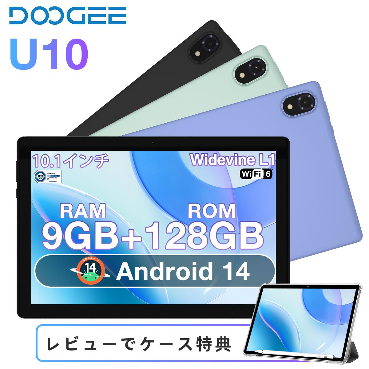 【注目点】■DOOGEE U10タブレットは、最新のAndroid 14を搭載し、強力な9GB RAMと128GB ROMのストレージを備えています。