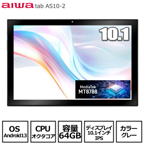 | アイワ Android タブレット aiwa tab AS10-2 10.1型 Mediatek MT8788オクタコア Android 13 Dolby Atmos対応 JA3-TBA1006-4 Wi-Fi モデル IPS液晶 10.1インチ 64GB グレー 本体 新品 aiwa