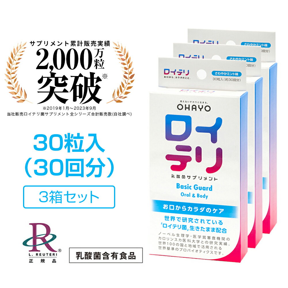 | 【楽天ランキング1位 5冠達成】[公式] ロイテリ 乳酸菌 サプリメント ベーシックガード 30粒入【3箱セット】ミント ロイテリ菌 タブレット サプリ プロバイオティクス バイオガイア正規品 オハヨー 乳業 OHAYO 菌活 腸活 糖尿病 歯茎 歯周病 口腔ケア 口臭 ケア 予防 対策