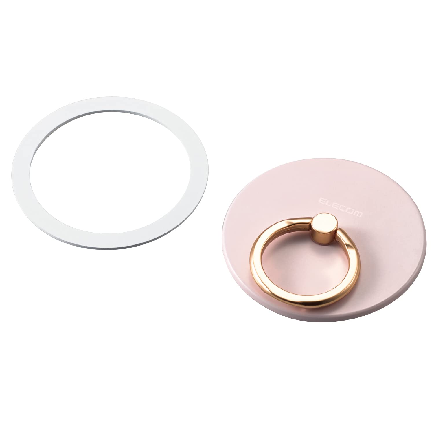 エレコム スマホリング マグネット 薄型 落下防止 メタルプレート付属 [Magsafe非対応のiPhone/Android向け] MAGKEEPシリーズ ピンク P-STRMKPSLPN