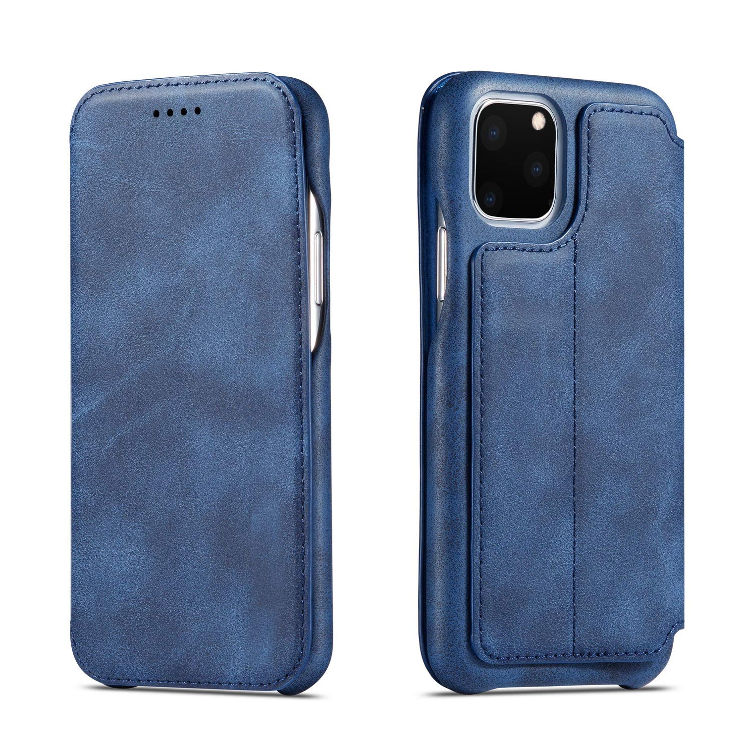 QLTYPRI iPhone 11 6.1 inch 2019 手帳型 ウォレット ケース 上質 レザー 手作り ヴィンテージ 人気 全面保護 多機種 多色 薄型 カバー「カード収納」「磁気開閉」 - ネイビー