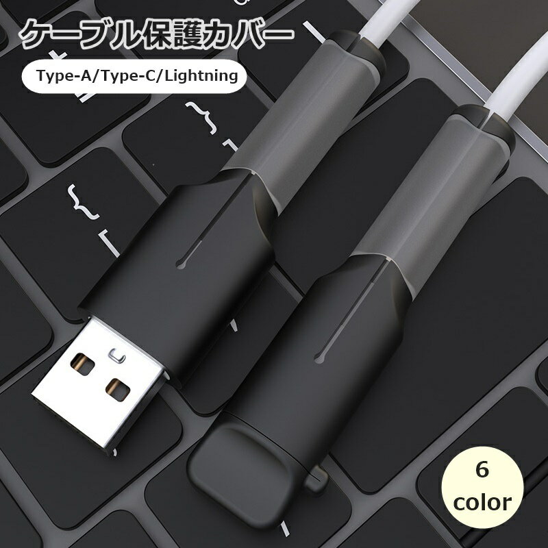 | 送料無料 ケーブル保護カバー ケーブルプロテクター iphone Android Type-C Type-A Lightning USB iPod キャップ付き シリコン 充電ケーブル 断線防止