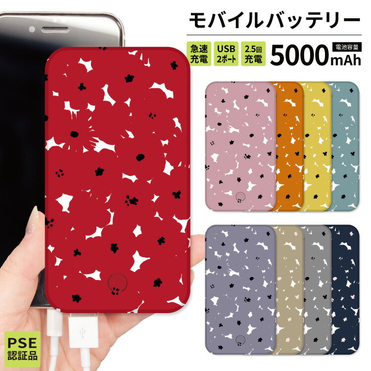 【セール半額!】 モバイルバッテリー 軽量 iPhone 薄型 5000mAh 持ち運び電池 災害 充電器 USB 充電 スマホ 電池 バッテリー 携帯充電器 iPhone iPad Android 北欧柄 北欧風 黒 花柄 花 フラワー オシャレ かわいい シンプル ブラック 黒 ピンク