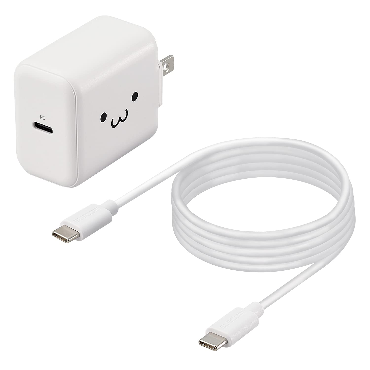 | エレコム USB コンセント 充電器 20W ( USB PD対応 ) Type-C×1 / Type-Cケーブル(C-C) 1.5m ホワイトフェイス MPA-ACCP18WF