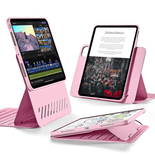 | ESR iPad Pro 11インチ ケース M4 (2024、第5世代)専用 取外し可能なマグネットカバー付き回転式ケース 縦向き/横向きスタンド 9段階の角度調節可能 Pencil Pro/USB-C完全対応 Shiftシリーズ ピンク
