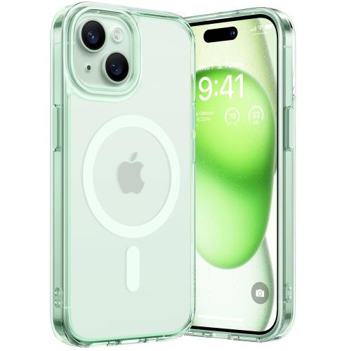 | TORRAS iPhone 15 用 ケース クリア マグネット搭載 黄ばみなし ワイヤレス充電 耐衝撃 全面保護 あいふぉん15ケース 薄緑