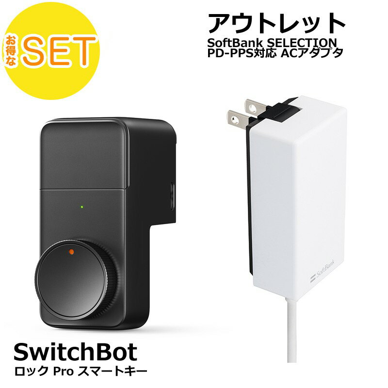 送料無 送料無し製品特長 SwitchBot スマートロックPro + Softbank SELECTION 27W USB-C 急速充電器 セット 1、SwitchBot ロック Pro さらに進化し、スマートロックの最高峰へ ・進化した適応性で約99%のドアロックに対応 ・バッテリー寿命がPro! 単3電池4本付属で電池交換は約270日に。