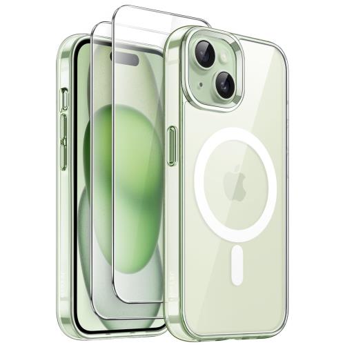 JETech 3 in 1 iPhone 15 6.1 インチ用 マグネット ケース 2枚強化ガラスフィルム付き MagSafe対応 耐衝撃バンパー スマホカバー (グリーン)
