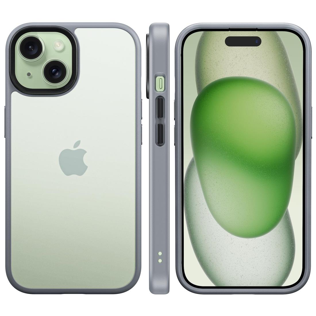 NIMASO ケース iPhone 15 用 カバー 滑り止め マット仕上げ 全面保護 耐衝撃 米軍MIL規格取得 ワイヤレス充電 ストラップホール付き アイフォン 15(6.1インチ)対応 スマホケース グレー (黒羽シリーズ) NSC23K862