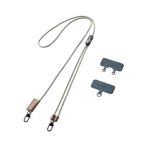 [エレコム] スマホショルダー スマホストラップ カジュアル ナイロン 丸紐 ストラップシート(1口&2口) 付属 長さ調節可能 [好きなスマホケースに挟むだけ] 【iPhone、Android 全機種対応】 オリーブ P-STSDH2ROV