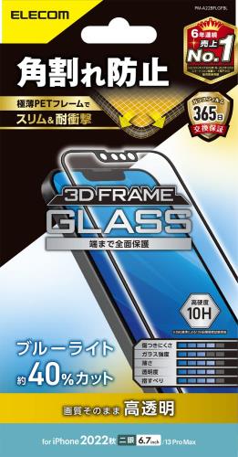 | エレコム iPhone 14 Plus / 13 Pro Max ガラスフィルム 角割れ防止 フレーム付 ブルーライトカット 強化ガラス 表面硬度10H 指紋防止 飛散防止 エアーレス 光沢 PM-A22BFLGFBL