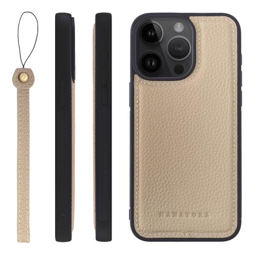 | HANATORA iPhone15ProMax ケース 本革 耐衝撃 バンパー型 スマホケース スマホ ストラップ 付き シュリンクレザー ギフト グレージュ SPGGZ-15ProMax-Grege
