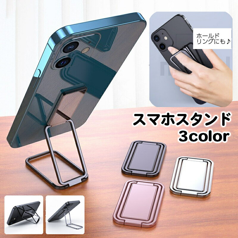 | 送料無料 スマホスタンド ホールドリング スマホリング 2in1 タブレットスタンド 長方形 スクエア リングホルダー 2way 縦置き 横置き 折り畳み シンプル おしゃれ スタイリッシュ 携帯 iPhone Android 便利 スマートフォンアクセサリー