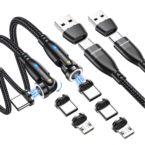 VAFOTON PD100W対応 9pin マグネット 充電ケーブル1M+1.8M+6個端子540度回転 1本6役 5A超急速充電 データ転送可 USB-A変換アダプタ付き USB-A/USB-C to Type-C/Micro/i-Product PDケーブル Book/Pro/phone/Micro/Android等対応 磁石 磁気
