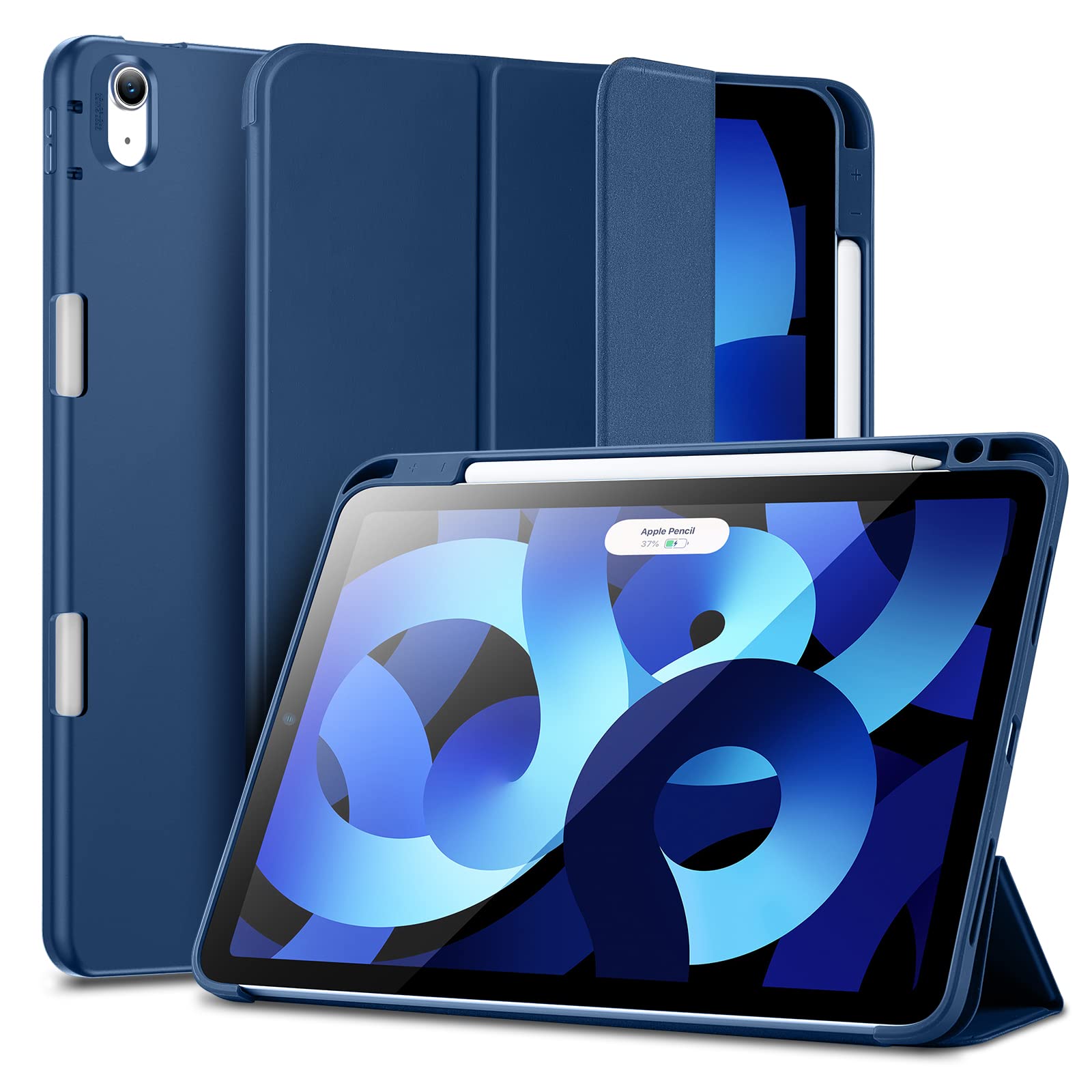 ESR iPad Air 第5世代 ケース 2022 ペンシル収納 iPad Air 第4世代 ケース 2020 10.9インチ Apple Pencil 収納可能 Apple Pencil 2 ワイヤレス充電対応 三つ折スタンド オートスリープ ウェイク機能 ソフトTPUバックカバー iPad ケース グレー ブルー