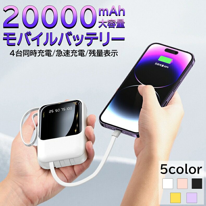 商品情報 製品名 「大容量モバイルバッテリー」 カラー ホワイト、ブラック、ピンク、パープル、イエロー 特徴