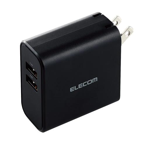 エレコム 充電器 USB コンセント 合計24W 2ポート USB-A 折りたたみ式プラグ 2台同時充電 おまかせ充電 iPhone SE3/15/14/13/12/Android 各種対応 ブラック EC-AC03BK