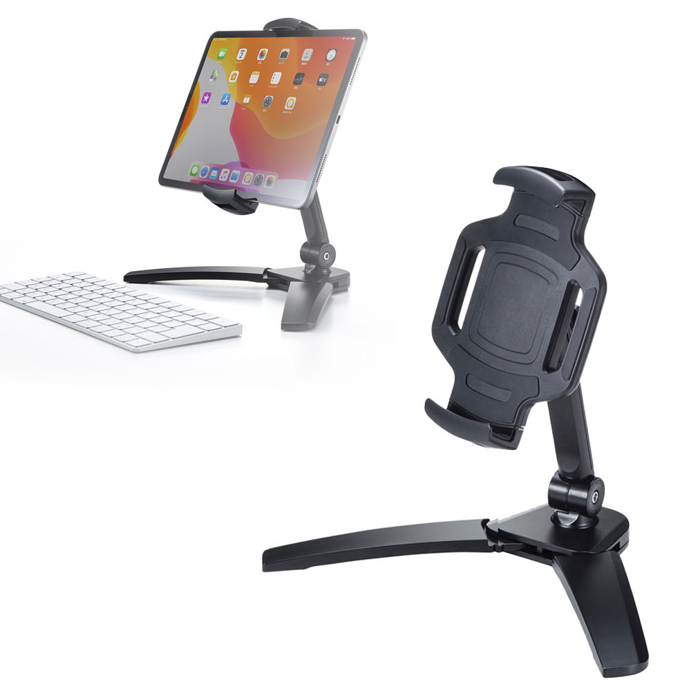 <特長>●360度回転・角度調節ができるiPad、タブレット用のデスクトップスタンドです。