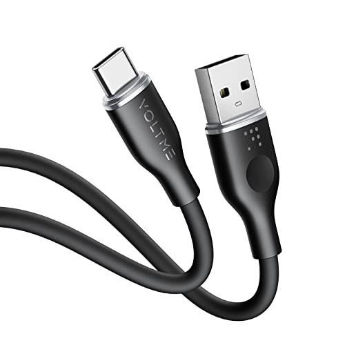 VOLTME USB Type C ケーブル 柔らかいシリコン製 絡まない 断線防止 タイプc 急速充電 QuickCharge3.0対応 Xperia/Galaxy/LG/iPad Pro/MacBook その他 Android(アンドロイド) 等 USB-C機器対応 在宅勤務支援 USB-A & USB-C ケーブル (1m ブラック)