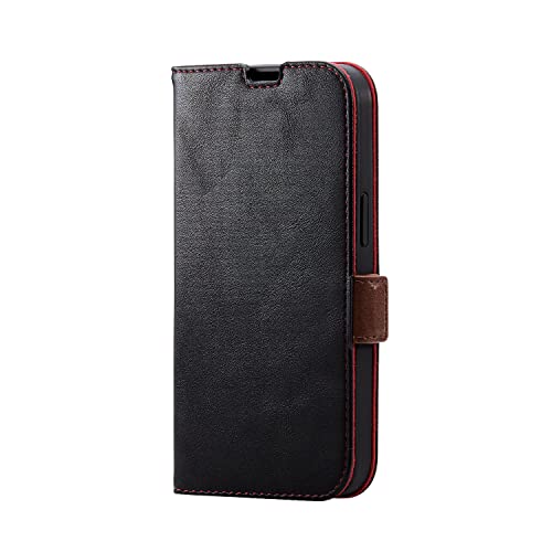 エレコム iPhone 14 / 13 ケース カバー 手帳型 耐衝撃 カードポケット付き マグネット開閉 ステッチ ストラップホール付き ブラック PM-A22APLFYBK