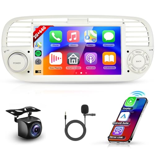 | Hodozzy 2G+64G フィアット 500 2007-2015 の Carplay のAndroid Auto カーオーディオのためのアンドロイド車のラジオ、Bluetooth GPS Navi WiFi FM RDS Hifi のカメラ 2Dinカーステレオフィアット 500 のため のラジオが付いている 7