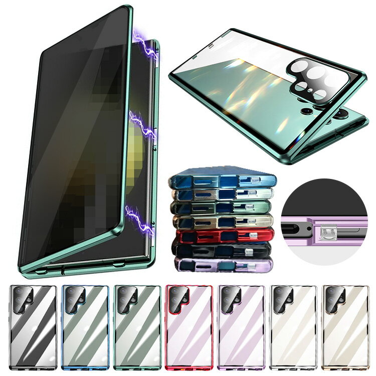 | Galaxy S24 ケース アルミ バンパー S24+ S24 Ultra カバー 覗き見防止 前後強化ガラス かっこいい アルミバンパー ロック付き カメラ保護 クリア 透明 両面 マグネット固定 全面保護 Samsung サムスン ギャラクシー S24/S24 プラス/S24 ウルトラ アンドロイド おすすめ