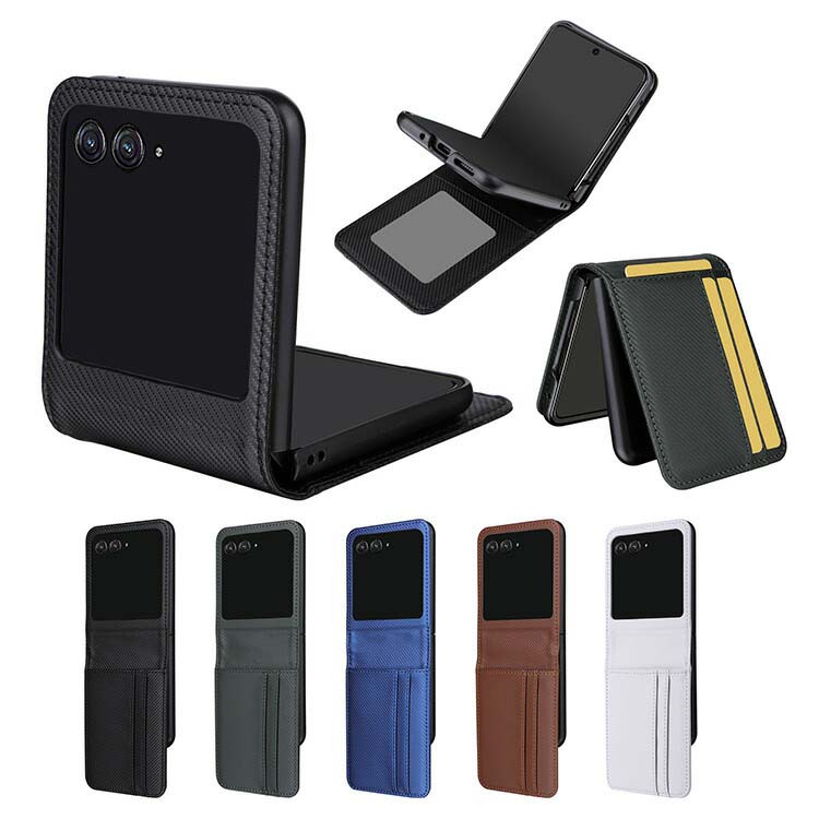 Moto Razr 40 Ultra ケース カバー PUレザー+プラスチック カーボン調 カード収納 ハードカバー ストラップホール付き シンプル Motorola モトローラ レーザー40 ウルトラ アンドロイド おすすめ おしゃれ スマートフォン/スマホケース/カバー