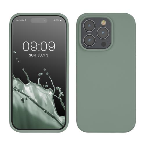 | kwmobile スマホケース 対応: Apple iPhone 14 Pro ケース - 耐衝撃 傷防止 サラサラ - シリコン TPU 雨洗い緑