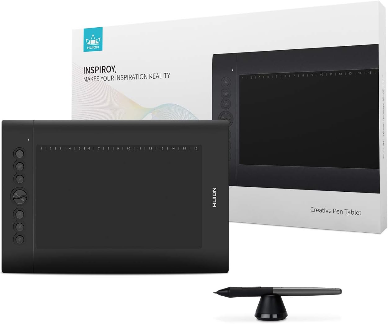 HUION ペンタブレット H610PROV2 ペンタブ 板タブ 10*6インチ Chromebookでお使える スマホ対応 android windows mac対応 傾き検知機能 筆圧感知 8192 充電不要ペン 8個のショートカット 左利き お絵描き イラスト -