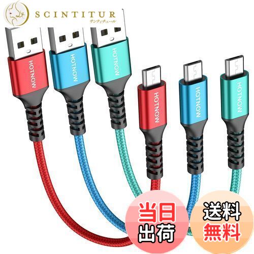【パッケージ付属】3本0.3mマイクロUSBケーブル、30cmショートデザインコード、短距離充電に最適、もつれがなく、持ち運びが簡単