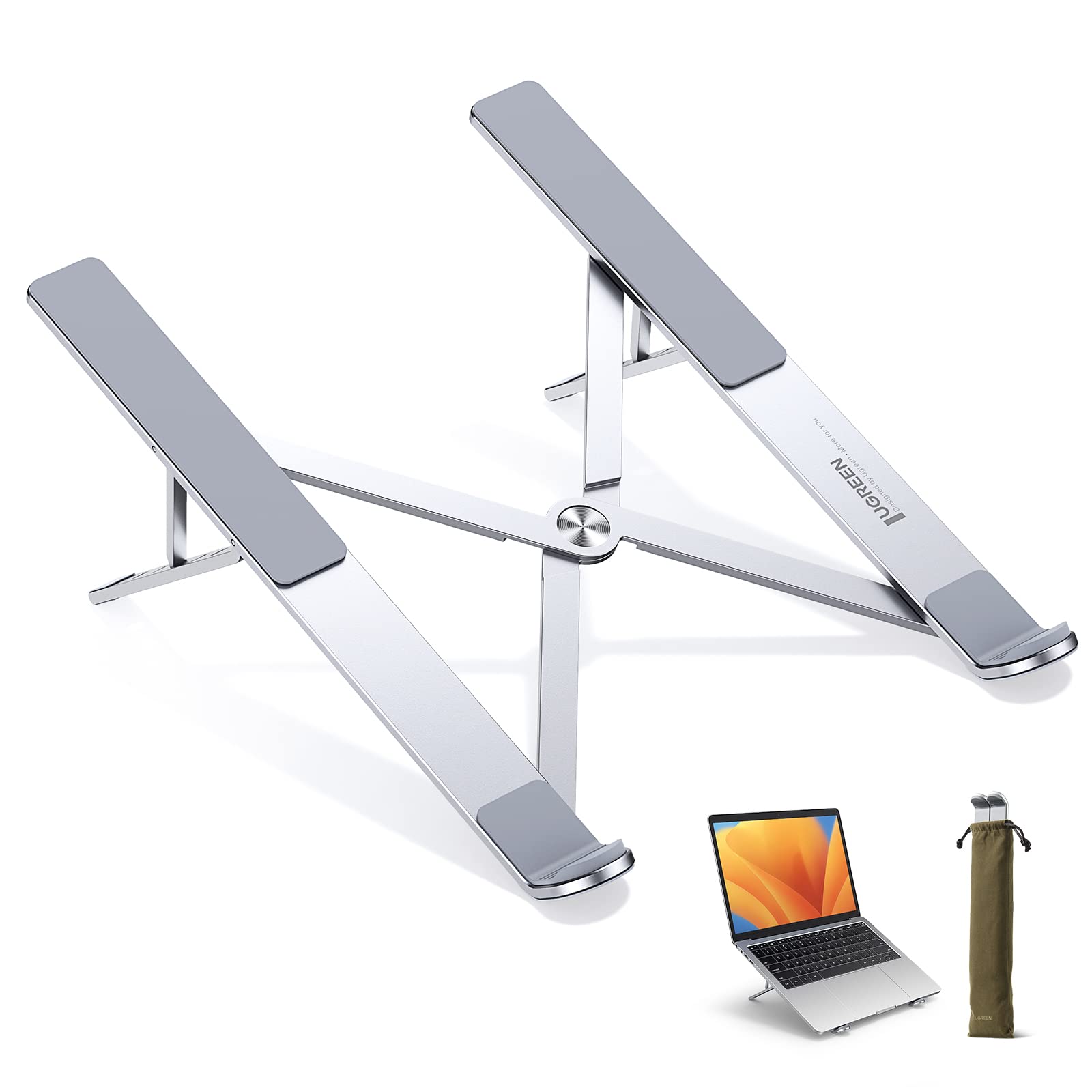 UGREEN ノートパソコンスタンド PCスタンド 折りたたみ式 パソコンスタンド コンパクト 持ち運びやすい ラップトップスタンド 7.9-17.3インチまでのノートPC タブレットに対応 アルミ合金素材 5段階角度調整可能 滑り止めシリコン 収納ケース付き