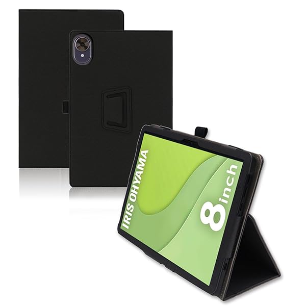 For IRIS OHYAMA TA08E1W63-V1H ケース アイリスオーヤマ タブレット 8インチ 専用ケース スタンド 機能 角度調整 上質PUレザー キズ防止 軽量 カバー 全面保護 タブレット用アクセサリー (ブラック)